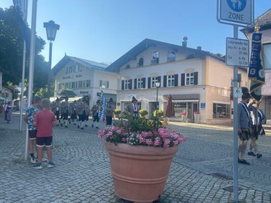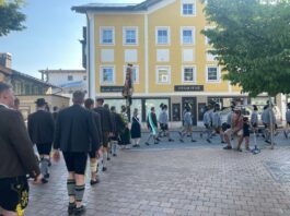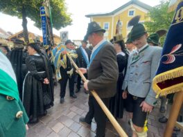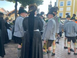 Hierzu trafen sich die beiden Festvereine mit der Festmusikkapelle Prien und mit seinen geladenen Vereinen und Gästen am Hotel Bayerischen Hof um gemeinsam zum Marktplatz und zur Feier am Friedensdenkmal zu marschieren.Trachtenvorstand Klaus Kollmannsberger und Jungbauernschaftsvorsitzender Flroian Krempl erinnerten an die Leistungen der Vorfahren und an die mit ihnen bis heute bestehende Verbundenheit und Verpflichtung. Pfarrer Philipp Werner sprach nach der Kranzniederliegung die Gebete. Den Ehrensalut schossen die Priener Gebirgsschützen.