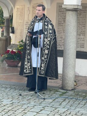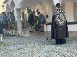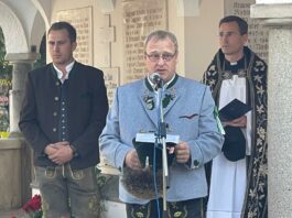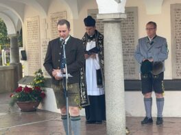 Ein wichtiger Bestandteil am Festprogramm zum 130jährigen Bestehen des Trachtenvereins Prien und des 30jährigen Jubiläums der Jungbauernschaft Prien und Umgebung ausserhalb des Festzeltes ist die Ehrung der Verstorbenen.