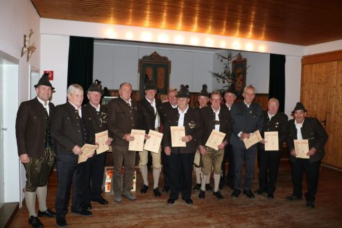 Erstmals vergaben die „Elfer“ das neugeschaffene Ehrenzeichen für langjährige Vereinstreue in vier Stufen. Das goldene Abzeichen für 60-jährige aktive Mitarbeit bei den Wildenwarter Schützen erhielten Peter Loferer und Josef Ramsl senior, das Ehrenzeichen für 50 Jahre dürfen künftig Peter Möderl, Frank Dirmeier, Benno Ramsl, Robert Gmeiner, Anton Harntasch, Josef Huber, Sebastian Spitzl, Hans Steindlmüller senior, Josef Gelder, Rudi Friedrich, Hans Riepertinger, Andreas Freund senior, Leopold Baumgartner, Josef Friedrich, Josef Freund, Paul Huber und Werner Klein tragen. 20 Männer und Frauen sind seit 40 Jahren Mitglied bei den „Elfern“ und 53 erhielten das silberne Abzeichen für 25-jährige Vereinszugehörigkeit.