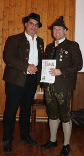 Gauschützenmeister Bernhard Brehmer übergab bei der Versammlung der Schützengesellschaft „Die Elfer“ Wildenwart in der Wildenwarter Schlosswirtschaft die Verdienstnadel des Bezirks Oberbayern im BSSB an den Schützenmeister der „Elfer Wildenwart“ Andreas Freund junior in Anerkennung seiner besonderen Verdienste um das Oberbayerische Schützenwesen und die Wahrung des Brauchtums.