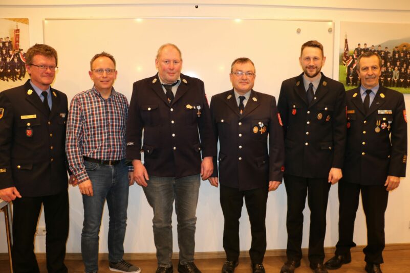 „Nur mit außergewöhnlichen Feuerwehrleuten, die jahrzehntelang zur Verfügung stehen lässt sich so ein hoher Ausbildungsstand halten“. Zwei hochverdiente Feuerwehrleute zeichneten Kreisbrandrat Richard Schrank und Kreisbrandmeister Stefan Pfliegl zusammen mit Bürgermeister Daniel Mair und Kommandant Josef Weber aus: der langjährige Kommandant Georg Kaiser und der Geräteverwalter und Maschinist Sebastian Weber erhielten das goldene Feuerwehrehrenzeichen des Freistaats Bayern für 40 Jahre aktiven Feuerwehrdienst, unterschrieben vom bayerischen Innenminister Joachim Hermann, verbunden mit einem einwöchigen Aufenthalt im Feuerwehrerholungsheim Bayerisch Gmain. Christian Hamberger, Franz Voggenauer, Richard Voggenauer, Jakob Wörndl und Johann Wörndl erhielten das Ehrenzeichen in Silber für 25 Jahre aktiven Feuerwehrdienst.