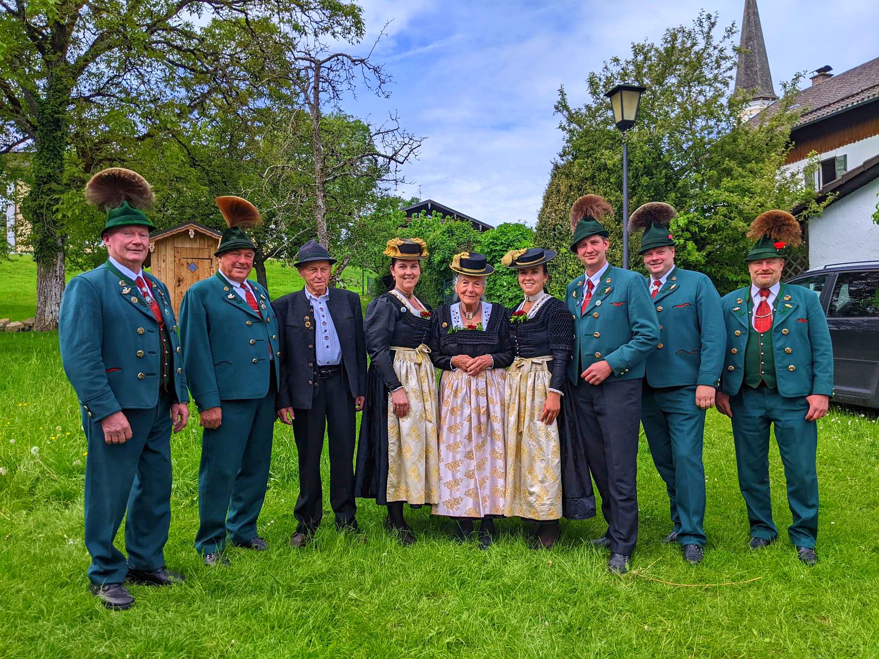 Erster Vorstand Christoph Kaufmann (ganz links) und seine Stellvertreter Florian Wörndl (ganz rechts) und Michael Pfaffinger (zweiter von rechts) konnte langjährige Mitglieder auszeichnen. Von Links: Andreas Lampersberger (60 Jahre), Albert Kaufmann (75 Jahre), Andrea Mayer (25 Jahre), Agnes Steinbichler (60 Jahre), Elisabeth Stürzer (25 Jahre) und Franz Schnaiter (25 Jahre).