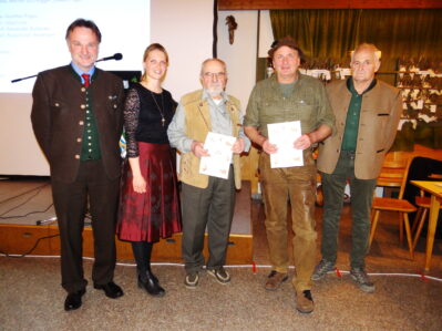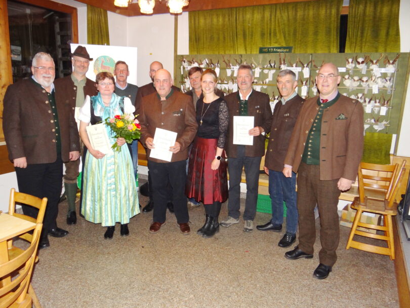 Mit der Wildhegenadel, einer Auszeichnung des Bayerischen Jagdverbands für besondere Leistungen, wurden Sepp Hajda für seine langjährige Tätigkeit in der Fallenausbildung sowie Franz Huber für seine langjährige Leitung im Schießwesen geehrt. Weitere Vereinsehrungen waren: