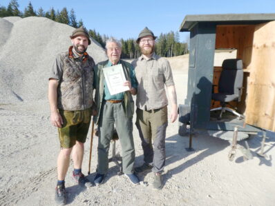- Die Ehrung für Paul Wimmer übergaben die Hegeringleiter Lukas (li.) und Valentin Pilger beim Einschießen.