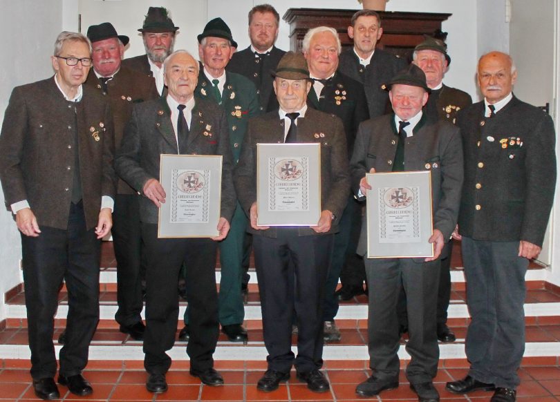 Seit 60 Jahren ist er Mitglied beim Wildenwarter Veteranenverein, er war der Allererste, der 1957 nach der Aufstellung der Bundeswehr aus der kleinen Gemeinde Wildenwart zur Gebirgspanzeraufklärungskompanie 8 nach Traunstein eingezogen wurde: Josef Ramsl aus Rain erhielt für sein jahrzehntelanges Engagement für den Wildenwarter Veteranenverein das goldene Verdienstabzeichen für 60-jährige Vereinstreue, zugleich erhielt er die Ehrenmitgliedschaft des Vereins mit Urkunde und Abzeichen verliehen. Auch Peter Loferer war einer der Männer der ersten Stunde der Bundeswehr und erhielt die Ehrenmitgliedschaft, ebenso Stefan Freund für seine stete Präsenz bei allen Veranstaltungen des Vereins. Das goldene Verdienstabzeichen für 50-jährige Vereinstreue erhielten der zweite Vorsitzende Georg Kronast, der langjährige Kassier Paul Huber und Michael Schlosser senior, der jahrzehntelang im Vereinsausschuss mitarbeitete sowie Ludwig Klarl.