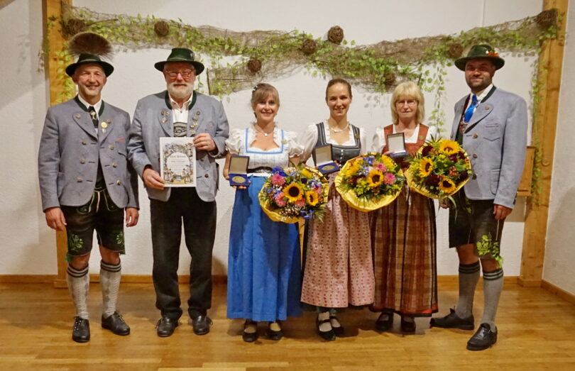 Peter Veitinger wurde für 50 Jahre geehrt. Von diesen 50 Jahren war Peter 31 Jahre zweiter Vorsitzender und auch er ist bis heute aktiv, vor allem am Christkindlmarkt dabei. Auch der Vorsitzende des Loisachgaues, Josef Ponholzer, war auf der Versammlung anwesend und ehrte ihn für diese lange aktive Zeit. Außerdem erhielten Kathrin Bernwieser und Agnes Brüderle für ihre langjährige Tätigkeit im Ausschuss die Gaumedaille in Bronze (Kathrin Bernwieser 12 Jahre Volksmusikwartin, 3 Jahre Schriftführerin; Agnes Brüderle 15 Jahre Vereinsheimwartin). Veronika Speer erhält für ihre lange Zeit als Vereinsdeandl und Kassier die Gaumedaille in Silber. Kathrin Bernwieser