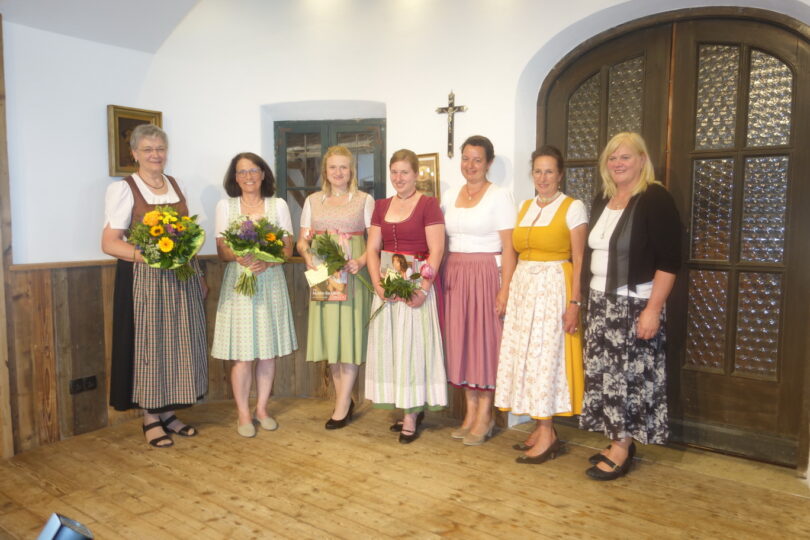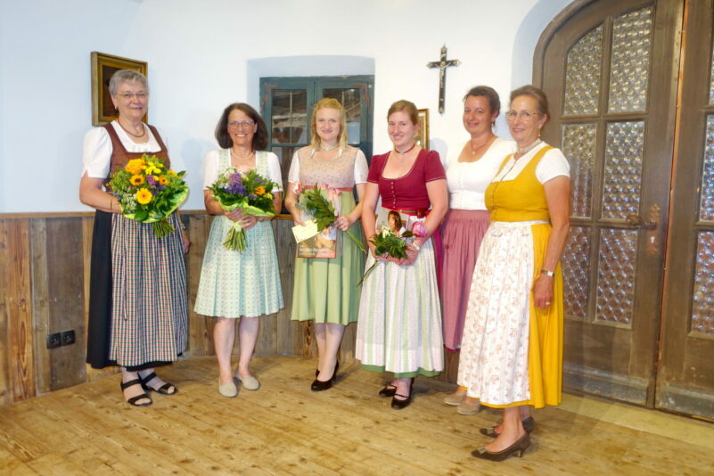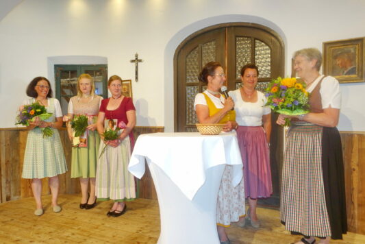 Insgesamt konnten im Vorjahr 2021 Absolventinnen die Meisterschule Hauswirtschaft erfolgreich abschließen, aus dem Landkreis Rosenheim waren dies Anna Bachmeier aus Rohrdorf, Maria Hartl aus Halfing, Rosalie Huber aus Prien, Elisabeth Liegl aus Söchtenau und Elisabeth Niederthanner (geb. Posch) aus Nussdorf. Ein weiterer Dank im Saal vom Landgasthof Stechl in Rott am Inn galt mit einem Blumenstrauß Anneliese Riepertinger für ihr Engagement zugunsten der Senioren-Bäuerinnen und Senioren-Landfrauen.