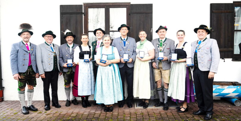 Ponholzer gratulierte Walter Ebner, Ehrenvorstand der „Loisachtaler“ Wolfratshausen, für 50 Jahre aktive Mitgliedschaft im Loisachtaler Gauverband und steckte ihm das Ehrenzeichen an. Auch Ludwig Ponholzer und Karl Zwerger, beide „Waxnstoana Antdorf, wurden in Abwesenheit für 50 – jährige Mitgliedschaft geehrt. Besonders freute es den Gauvorstand, im Anschluss daran einige Trachtler für besonders vorbildliches Engagement in ihren jeweiligen Vereinen, aber auch im Gau zu danken: