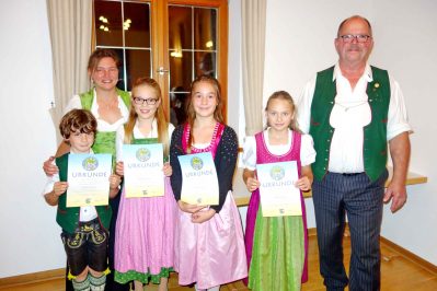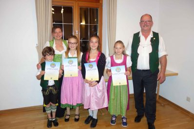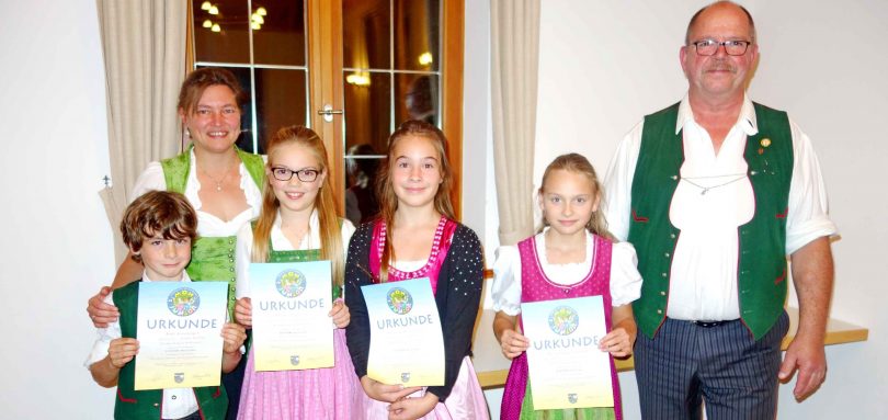 Auch bei der heurigen Jahresversammlung des Musikfördervereins von Wildenwart (wir berichteten) im Vereinshaus von Atzing konnten wieder Nachwuchs-Musikanten ob ihrer Ausbildungs-Erfolge mit Urkunden und Abzeichen ausgezeichnet werden. Die schriftlichen und musikalischen Prüfungen wurden in Abstimmung mit dem Musikbund Ober- und Niederbayern durchgeführt und sie dienten und dienen zur Motivation für weiteres Proben und Musizieren. Zweiter Vorsitzender Andreas Willmann und die Ausbildungsbeauftragte Eva-Maria Gruber nahmen die Auszeichnung mit dem Junior-Leistungs-Abzeichen vor. Dabei bekamen (von links) die Urkunde Karli Attenberger (Bariton), Johanna Voggenauer (Klarinette), Franziska Bachschneider (Querflöte) und Hannah-Hoffmann-Gill (Saxophon). Zu den Gratulanten gehörte auch Vorstand Helmut Rosenwink von der Blaskapelle Wildenwrt, er bezeichnete den Verein als Jung-Musikanten-Schmiede.