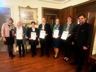 Die Silberne Ehrennadel des Verbandes Bayerischer Amateurtheater für 25 Jahre Vereinszugehörigkeit gab es für Gabi Siebert, Annemarie Lackerschmid und Christine Gasteiger. Seit 45 Jahren dem Bauerntheater treu und in vielerlei Tätigkeiten auf und hinter der Bühne aktiv sind Martina Eifertinger sowie die Geschwister Irmi und Sepp Furtner. Die Ehrung nahm Franz Fritz in seinem letzten Jahr als Vorstand des Bauerntheaters vor ehe er nach 19 Jahren dieses Amt an Peter Thaurer junior weitergab.