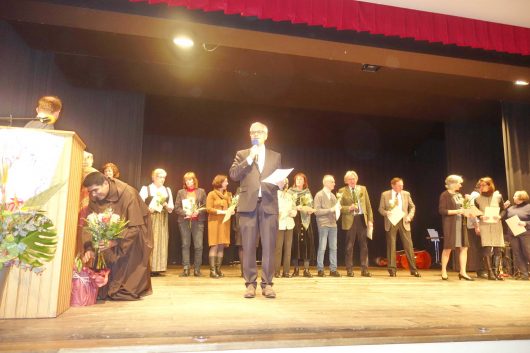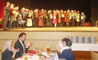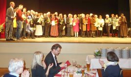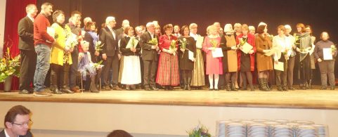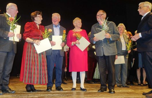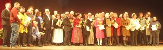 Das „Fest der Priener Kirchenmusik“ anlässlich der Verabschiedung von Kirchenmusiker Rainer Schütz in den Ruhestand war im König-Ludwig-Saal von Prien willkommener Anlass für Pfarrer Klaus Hofstetter, Kaplan Joshy, Rainer Schütz und für Diözesan-Musikdirektor Gerald Fischer, um langjährigen Mitgliedern des Chores „Maria Himmelfahrt“ einen Dank auszusprechen und sie mit Urkunden zu ehren. Insgesamt 50 Personen wurden für 20 Jahre und mehr geehrt, weil sie ihre treuen Proben- und Aufführungsdienste zur Ehre Gottes und zur Freude der Kirchen- und Veranstaltungsbesucher treu erfüllten. Die längste aktive Zeit mit ganzen 68 Jahren gehört Anneliese Wallner dem Chor an, ihr folgten unter anderem Ehrenbürger Michael Anner mit 62 Jahren und dessen Frau Ingrid mit 55 Jahren. „Das müssten rund 1.540 Jahre gewesen sein, die heute auf der Bühne für den Chordienst geehrt worden sind“ – so Kirchenpfleger Paul Mehlhart, der bei den vielen Ehrungen mitgezählt hat. Ein weiteres „Vergelt´s Gott“ für langjährigen Dienst an der Orgel gab es für Hubert Huber und für Sebastian Weyerer.