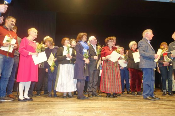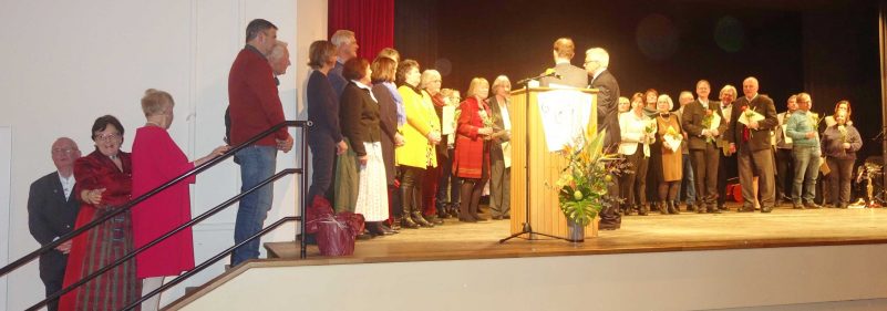 Nr. …643: Rainer Schütz (re.) ehrte zahlreiche Chormitglieder mit Urkunden für ihren langjährigen Dienst.