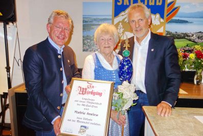 - Seit 70 Jahren dem Ski-Club Prien treu: Anneliese Moehrke mit den Vorsitzenden Christian Wöhrer (re.) und Ali Schlichter.