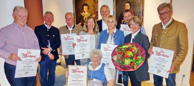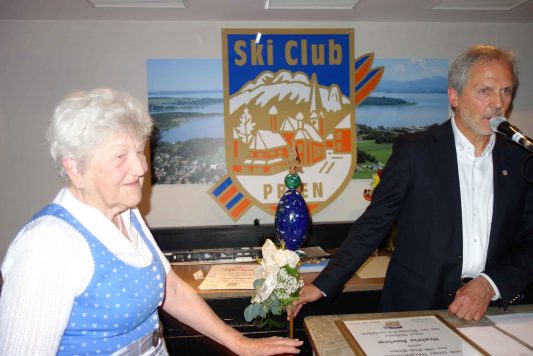Für besonders treue Vereinsmitgliedschaft und aktive Unterstützung hat der Ski-Club Prien bei seiner Jahresversammlung im Hotel Bayerische Hof Ehrungen und Auszeichnungen vornehmen können. Ganze 70 Jahre, genau seit dem 1. Januar 1949 gehört Anneliese Moehrke dem SC Prien an. Hierfür bekam sie von Vorstand Christian Wöhrer und seinem bisherigen Stellvertreter Ali Schlichter neben einer Urkunde auch eine Ehrennadel in groß in Form einer Kugel für den Garten. Weitere Auszeichnungen gab es für Sepp Resch und Bernd Leidl für 60 Jahre, für Maria Hirn und Susanne Kotzbauer für 50 Jahre, für Hans Stockinger für 40 Jahre sowie für Lorenz Fischer für 25 Jahre. Alle Geehrten erhielten eine von Vereinsmitglied Günther Urban schön gestaltete Urkunde und Ehrennadel. Blumen und ein herzliches Vergelt´s Gott galt noch Ali Schlichter, der 25 Jahre der Vorstandschaft angehörte und seiner Frau Maxi, die 36 Jahre ein Amt innehatte. Unsere Aufnahmen zeigen: