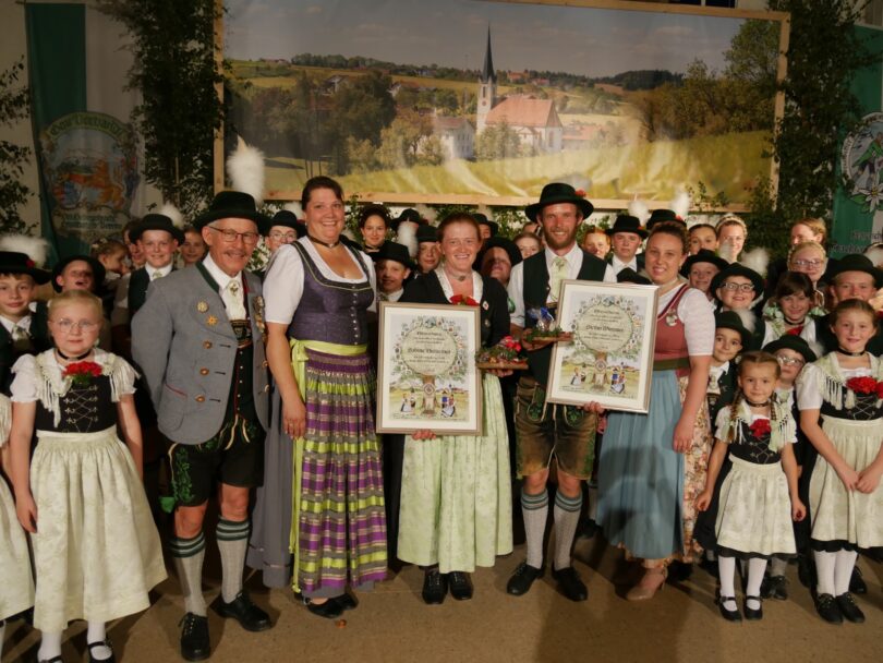 Mit dem Ehrenzeichen in Gold der Bayer. Trachtenjugend wurde Sabine Nußreiner ausgezeichnet. Stefan Wimmer erhielt die Ehrennadel in Silber. Sabine Nußreiner war von 1998 bis 2017 stellvertretende Jugendleiterin, organisierte Proben und Veranstaltungen und unterstützte ihre Jugendleiter-Kollegen vorbildlich. Seit 2018 kümmert sich als Trachtenwartin besonders um Tracht und Gwand der Kinder- und Jugendgruppe. Stefan Wimmer ist seit 2010 Jugendleiter des Vereins und begleitet, wenn Not am Mann ist, die Proben der Trachtenjugend und Aktiven musikalisch mit der Ziach. Ausserdem ist er überregional tätig als stellvertretender Vorsitzender des Kreisverbands der Trachtenjugend und Delegierter beim Kreisjugendring Mühldorf a.Inn.