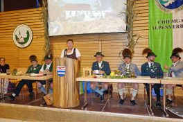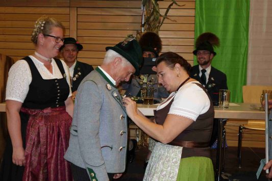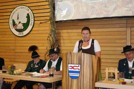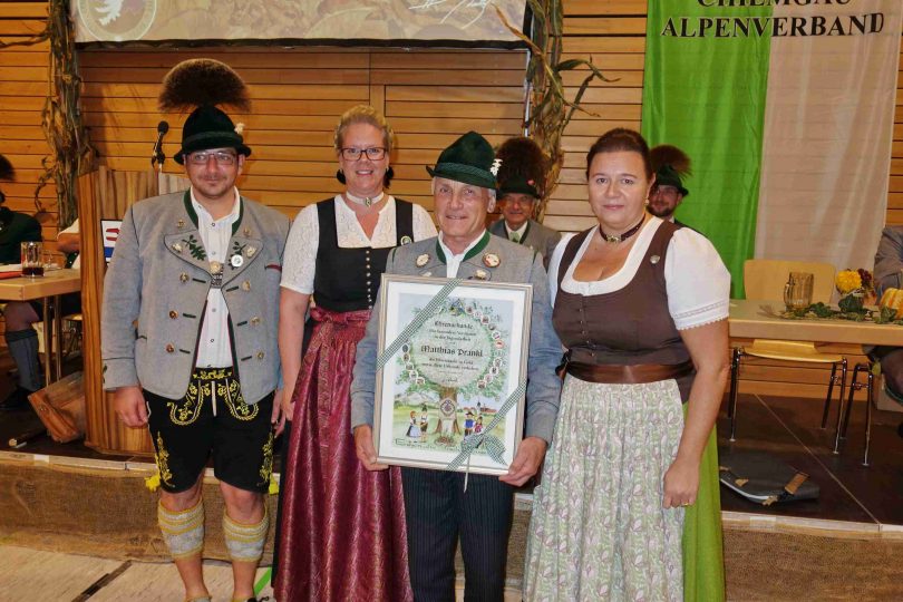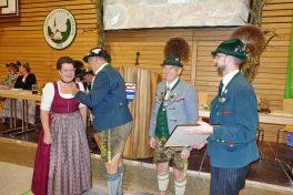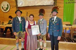 Eine besondere Ehrung konnte die Bayerische Trachtenjugend bei der Gauversammlung des Chiemgau-Alpenverbandes in der Mehrzweckhalle von Amerang vornehmen. Matthias Prankl vom Trachtenverein „D`Lamstoana“ Frasdorf erhielt aus der Hand von Stephanie Perfler die Ehrennadel in Gold und eine Ehrenurkunde. Verdient hatte sich Prankl diese Auszeichnung für seine langjährigen Vorplattler- und Jugendleiter-Tätigkeiten von 1974 bis 1996 und für seine bis heute verlässliche Mitarbeit innerhalb des Frasdorfer Trachtenvereins. Die Auszeichnung nahm Stephanie Perfler zusammen mit den Gaujugendwarten Christoph Bauer und Monika Hiendl vor. Eine weitere, für Vereinsmitglieder die höchste Gau-Auszeichnung gab es für Marianne Jauernig vom Trachtenverein „Chiemgau“. Gute 13 Jahre lang war sie von 1978 bis 1992 Erste Schriftführerin, insgesamt gehörte sie bislang der Vereins-Vorstandschaft 31 Jahre an, seit vier Jahren ist sie sogar die Erste Vorständin bei ihrem Verein. Das Gauverdienstzeichen mit Urkunde übergaben die Gauvorstände Miche Huber, Georg Westner und Franz Fischer gemeinsam.