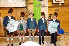 Heuer hätten die Trachtenvereine Grassau und Übersee ihr 100jähriges Gründungsfest gerne groß gefeiert. Da dies wegen Corona nicht möglich und auch sonst kein gebührend-festlicher Anlass war, übergaben die Gauvorstände die schön gemalten Jubiläumstafeln an die Vorstände Stefan Baumgartner von Grassau und Herbert Strauch von Übersee. Eine weitere Gratulation galt Zweitem Gauvorstand Georg Westner zu dessen jüngst in Regensburg erfolgten Wahl zum Zweiten Landeskassier. Er vertritt damit zusammen mit Musikwart Andreas Hilger und mit Pressesprecher Anton Hötzelsperger die Interessen der Chiemgauer Trachtler beim Bayerischen Trachtenverband.