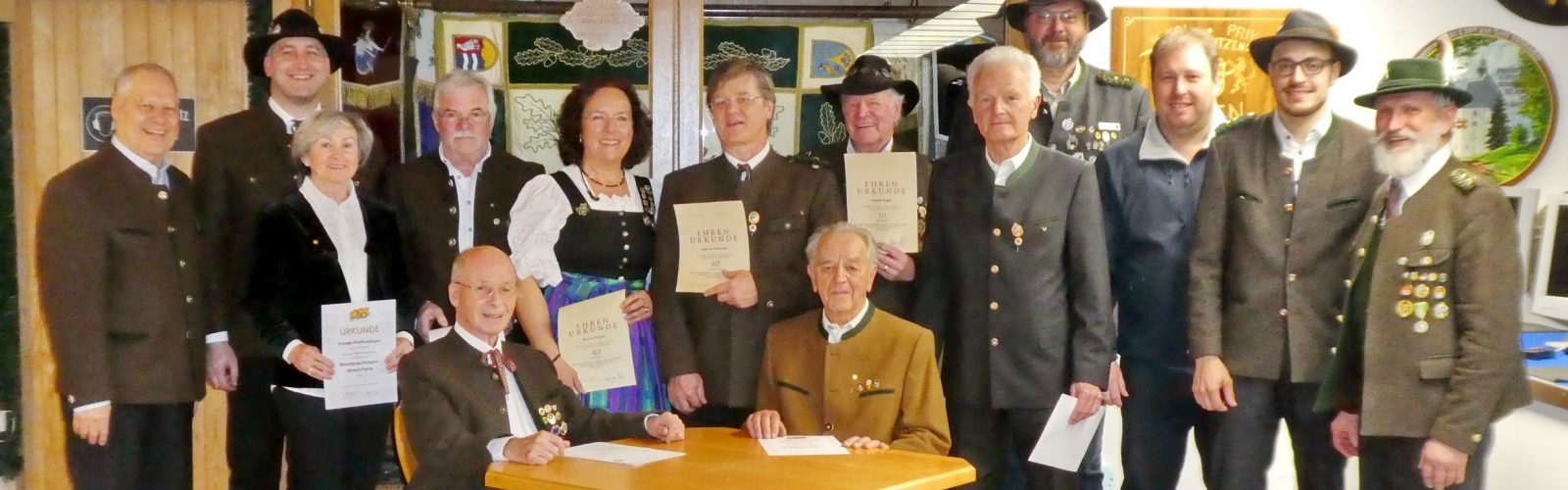 Schützenmeister Florian Wunderle und Gauschützenmeister Josef Schuster konnten nachfolgende Ehrungen vornehmen: 25 Jahre Mitgliedschaft Andreas Titze, 40 Jahre Mitgliedschaft Renate Erhard und Andreas Tscherner, 50 Jahre Mitgliedschaft Ludwig Krapfl und Walter Strauß sowie 60 Jahre Mitgliedschaft Ulrich Rackl. Die Verdienstnadel des Bayerischen Sportschützenbundes erhielt Rudi Weinzierl, Böllerehrungen gab es für Georg Hefter, Alfred Köhler, Anton Niedermayer, Anton Rappel und Hermann Stampfl. Das Meisterschützenabzeichen des Deutschen Sportschützenbundes bekamen Renate Pfaffenberger, Edgar Trost und Rudi Weinzierl.