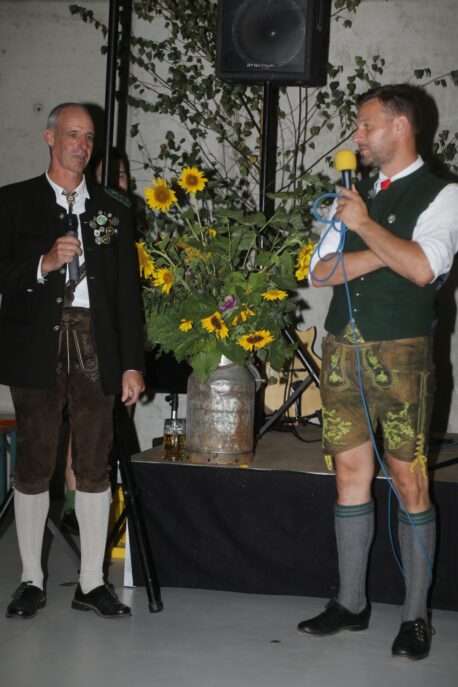 Ein kurzweiliges und einstündiges Rahmenprogramm beim Patenbitten, herrschte am Freitagabend, 25. August, in der vollen Pölsterl-Feststadl in Geislbach. Nach dem humorvollen Abendrahmenprogramm, das mit dem obligatorischen Scheitlknien endete, erklärten sich die Geislbacher Schützen schließlich bereit, die Patenschaft zu übernehmen. Zuvor waren aber bei den jeweils gestellten Aufgaben Tatkraft, Wissen, Einsatz- und Teamfähigkeit sowie Zusammenhalt, Kameradschaft und Gemeinschaft der Wambacher Vorstandschaft und Festausschuss sowie des Bürgermeister und Schirmherrn Stefan Haberl im Beisein der ersten Gauschützenmeisterin Gertraud Stadler des Schützengaues Dorfen gefragt, “die auf Herz und Nieren” geprüft wurden, ehe sie nach umfangreichen Prüfungen gerne zusagten, dieses Ehrenamt zu übernehmen. Die Moderation durch den Abend führten gekonnt die beiden Schützenmeister Gerhard Grasser (Wambach) und Norbert Hierl (Geislbach).