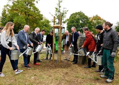 Durchgeführt wurde das Setzen der Stele und das Pflanzen des Baumes durch das bewährte Team der Abteilung Garten- und Landschaftsbau der Jugendsiedlung um Georg Huber und Daniel Hartl, die bereits zahlreiche „Eichenpflanzungen zu Ehren von Joseph Beuys“ im Landkreis ausgeführt haben. Weitere „Eichenpflanzungen zu Ehren von Joseph Beuys“ folgen in Kooperation mit dem Museum DASMAXIMUM bis Mitte November in St. Georgen, wo gemeinsam mit der Stadt Traunreut und dem BUND Naturschutz gepflanzt wird, danach folgen Chieming, Bernau, Siegsdorf, Gräfelfing, Triefenstein und München.