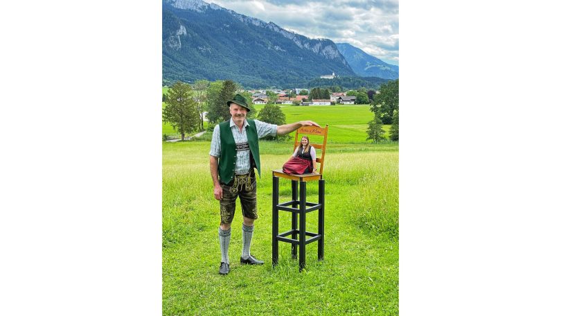 Wie ein Riese und ein Zwerg wirken Paul Kink, Wirt vom Cafe Pauli und Verena Weinhammer von der Tourist Info Aschau, auf diesem Foto hier. Freilich der Wirt ist in der Tat eine recht große Person, doch auch neben ihm sieht niemand wie ein kleiner Zwerg aus. Grund für das wundersame Foto ist der sogenannte „Beuchet-Stuhl“. Diese optische Täuschung lässt das Auge die Größenverhältnisse falsch einschätzen und trickst unser wichtigstes Sinnesorgan aus. Doch wie funktioniert diese Täuschung?