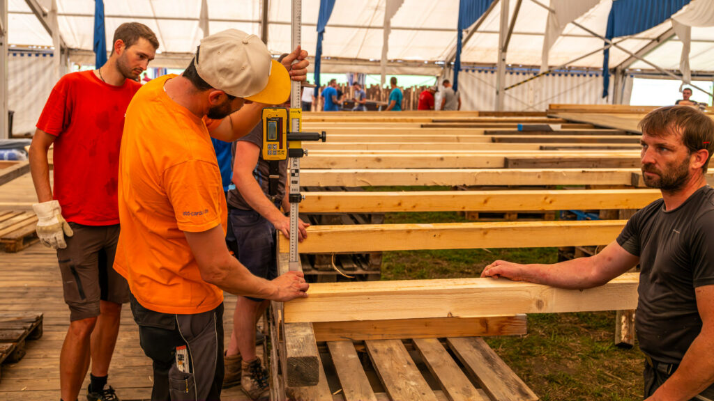Das Herzstück des Festes ist das imposante Festzelt, das bereits in den vergangenen Tagen errichtet wurde. Doch heute lag eine besondere Atmosphäre in der Luft: Über 50 Männer und Frauen aus der Gemeinde kamen zusammen, um dem Zelt den letzten Schliff zu geben und es in ein festliches Schmuckstück zu verwandeln.