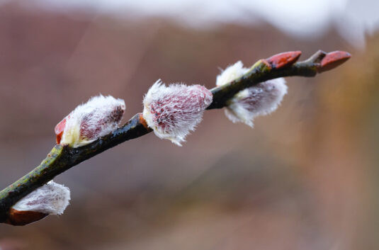 Ich war unterwegs, um erste Anzeichen vom Frühling zu finden und gehofft, erste Winterlinge, Schneeglöckchen oder Leberblümchen zu sehen. Doch hier in Sachrang liegt noch Schnee und so habe ich einzelne Palmkätzchen gefunden, die gerade die Schale gesprengt hatten und darauf sieht man noch etwas Schnee. Sobald die Palmkätzchen blühen, sind sie eine wichtige Nahrungsquelle für Vögel, Bienen und andere Insekten im Frühling. Deshalb sollten sie nicht abgeschnitten werden.