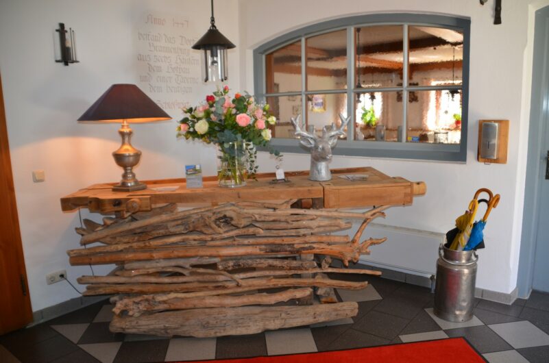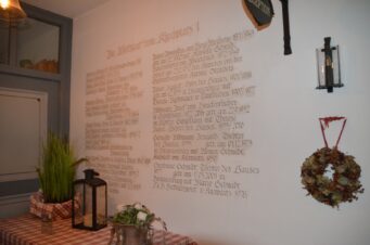 Die große zweiflügelige Türe im Erdgeschoß führt hinunter zur Kellerbar, die momentan renoviert wird – ab Oktober können dort Hotelgäste sowie einheimische Nachtschwärmer am Wochenende unter den alten Gewölbemauern die Atmosphäre genießen. Nach Vorankündigung und jeweils auf Reservierung werden dann Gin Cocktails mit den entsprechenden Menüs serviert. Schon jetzt beleben viele Vereine die Gaststube mit regelmäßigen Stammtischen, und Andrea Pothast betont, wie unterstützend der Ort und die Vereine sind. So fühlte sich die neue Pächterfamilie von Anfang an sehr willkommen geheißen.