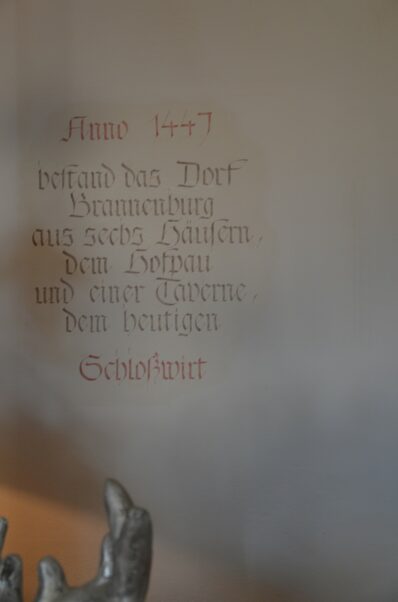 “Anno 1447 bestand das Dorf Brannenburg aus sechs Häusern, der Hofpau und einer Taverne, dem heutigen Schloßwirt”, kann man im Eingangsbereich des Gasthauses einer Wandinschrift entnehmen. Andrea Pothast, die seit Ende 2019 die Leitung innehat, nennt es „einen Wink des Schicksals”, der sie und ihre Familie zum Schlosswirt geführt hat. Eigentlich wollte die erfahrene Gastronomin nicht mehr allzu aktiv tätig sein. Aber nachdem ihr das Objekt nahegelegt wurde und sie erst nur Fotos sah, dann an einem nebligen Novembertag mit ihrem Mann das Haus und den schönen Ort drum herum in Augenschein nahm, war sie bereits in den Bann gezogen. Nachdem die Entscheidung gefallen war, das Haus von der Gemeinde Brannenburg zu pachten, wurden zunächst notwendige Sanierungen vorgenommen. Als Familienbetrieb führten vor allem ihr Mann und ihre beiden Söhne die handwerklichen Arbeiten aus.