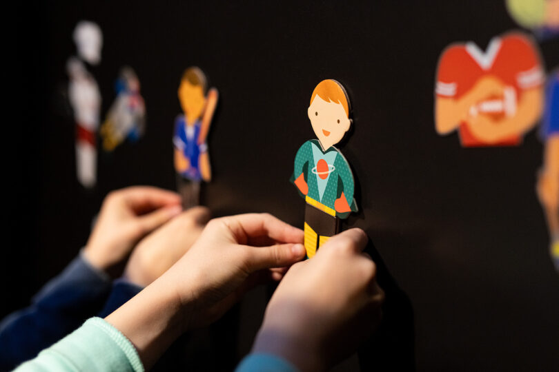 Bericht: Lokschuppen Rosenheim – Foto: Kinder stellen sich einen Helden an der Magnettafel zusammen © Axel Jusseit