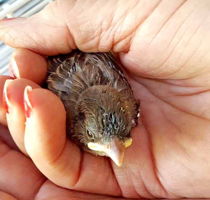 Die Enkelin von Dengg fand das Spatzenkücken mutterseelenallein in einer Wiese in Aschau. Mittels Smartphone schickte sie ihrer Oma ein Bild des Vogelbabys mit der Frage: “Was soll ich mit ihm machen?”