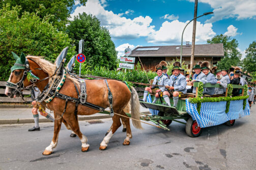 Auch die hohe Politik war vertreten: Landtagspräsidentin Ilse Aigner nahm mit spürbarer Freude und Begeisterung am Festzug teil – ganz in Tracht gekleidet und in der Ehrenkutsche fahrend, zeigte sie sich bürgernah und sichtbar beeindruckt von der gelebten Tradition. Immer wieder winkte sie aus dem offenen Wagen den Zuschauern am Straßenrand zu – ein Bild, das viele mit einem Lächeln erwiderten.