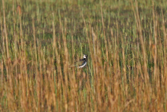 Versteckt in den Feuchtwiesen brütet auch der Vogel des Jahres, der Kiebitz. Auch wenn so manche Wiese leer erscheint, versteckt sich nur ein heimlicher Wiesenbrüter.