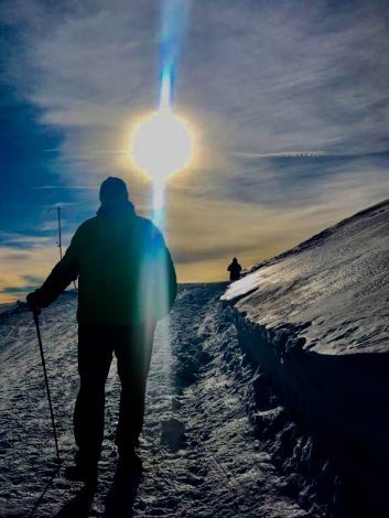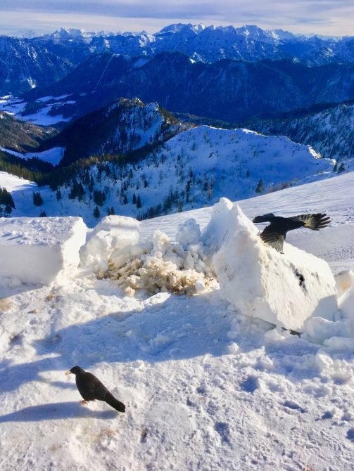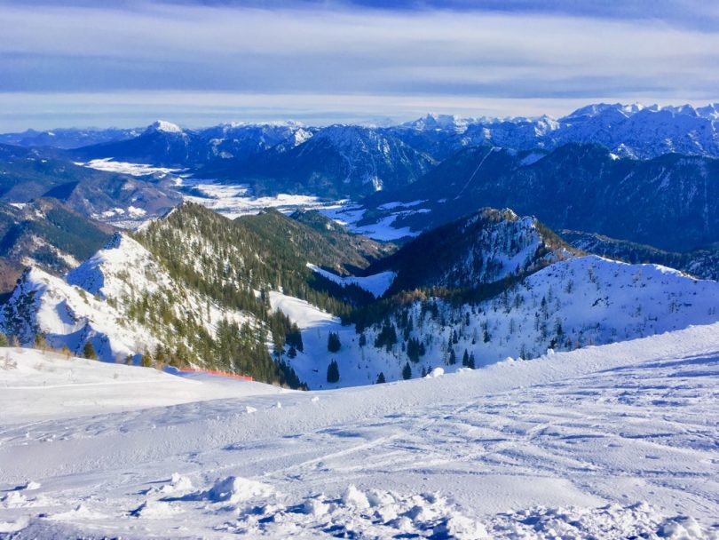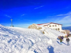 Weiß-Blau wie die bayerischen Landesfarben zeigte sich in diesen ersten Winterferientagen der Hochfelln im Chiemgau. Gut ausgerüstete Winterwanderer machen sich von Bergen mit der Bergbahn auf den Berg, um dort Sonne und Aussichten zu genießen.