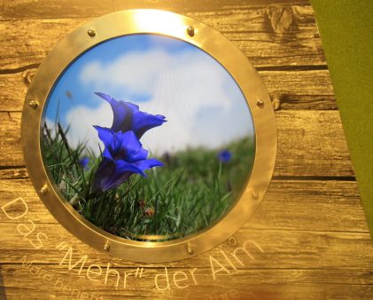 Bei einem Besuch kann man mittels abwechslungsreicher Infotafeln, außergewöhnlicher Fotos und Videos sowie interaktiver Ausstellungsstücke den Sehnsuchtsort Alm aus ganz neuen Perspektiven kennenlernen. Vom “Tatort Alm” über eine phantastische “Klang-Zeitreise” bis zur virtuellen Heuschlittenfahrt – die optisch äußerst ansprechend gestaltete “Almenwelt” vermittelt einen authentischen Eindruck vom Leben auf der Alm.