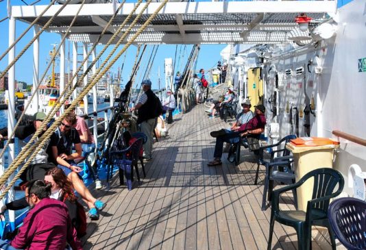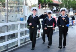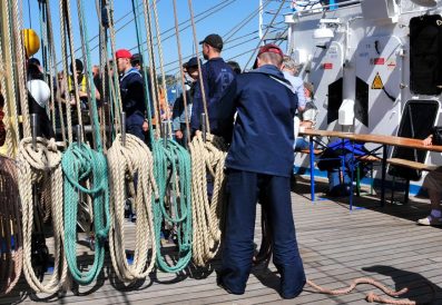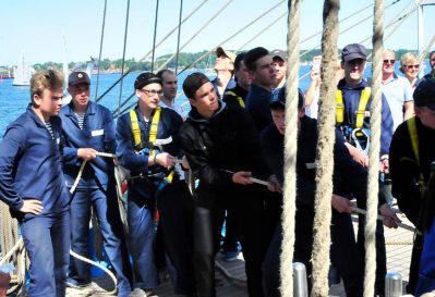 Um 11 Uhr geht es offiziell los: Die Schiffe laufen in Paradeformation aus der Kieler Innenförde in die Außenförde und nehmen Kurs auf Laboe. Jeder Großsegler führt eine Gruppe kleinerer Segler an.