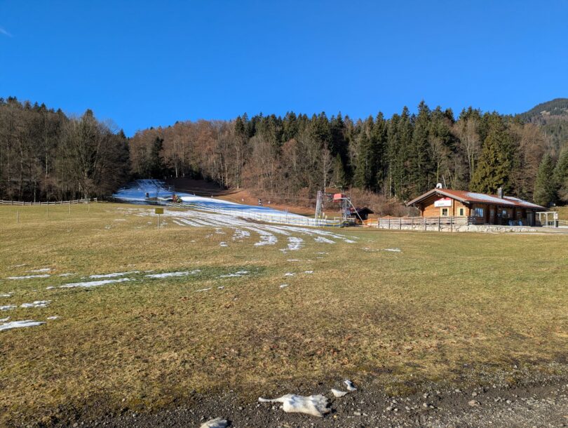 Sachrang gilt seit jeher als eines der schneesichersten Gebiete im Chiemgau. Umso bemerkenswerter – ja fast befremdlich – ist der Anblick, der sich derzeit bietet: Eine Woche vor Weihnachten liegen nur noch ein paar Schneereste vom Ende November, als es eine dünne Schneedecke gab, Langlaufen und Rodeln möglich war und man hoffnungsvoll auf die kommende Wintersportsaison blicken konnte.