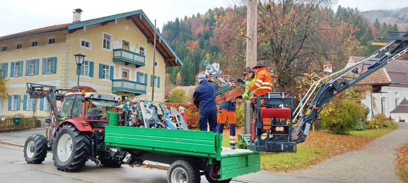 Mit Hilfe der Feuerwehr, des Trachtenvereins D´Geiglstoana und des Bauhofes der Gemeinde Aschau im Chiemgau wurden am Allerseelentag-Morgen die Figuren des Sachranger Maibaumes abgenommen und zum Winterquartier gebracht. Der Maibaum neben dem Dorfladen des Ortes ist zusammen mit der Kirche “St. Michael” ortsbildrpägend und Zeichen für gelebte Brauchtumspflege.