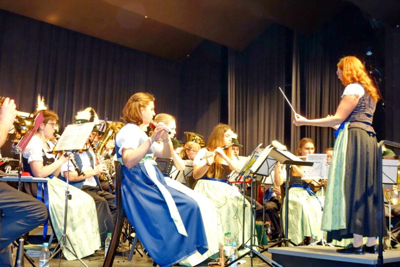 Vor dem Auftritt der Erwachsenen-Kapelle mit ihrer Dirigentin Regina Huber spielt die Jugendblaskapelle Prien unter der Leitung von Lothar Beyschlag einige vorweihnachtliche Weisen. In der Programm-Pause bieten Mitglieder des Fördervereins Glühwein für die Besucher an.