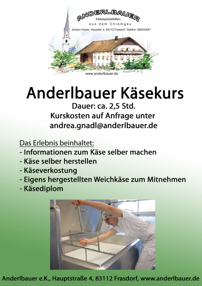 Der Anderbauer von Frasdorf, Chiemgauer Käsespezialist, vermeldet: “Für unseren Käsekurs diesen Sonntag (von 10 Uhr bis ca. 12.30 Uhr) sind kurzfristig noch Plätze frei geworden.