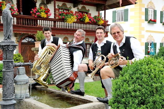Zum Saisonauftakt der Reihe „Volksmusik im Brunnenhof“ spielen die 4 Hinterberger Musikanten am Donnerstag, 11. Mai, von 19:00 bis 21:30 Uhr zünftig im Brunnenhof des Kurhauses Bad Aibling auf.