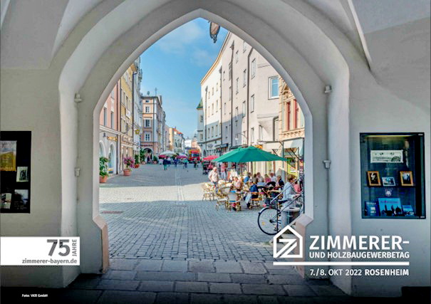 Bauen mit Holz ist aktiver Klimaschutz und gelebte Nachhaltigkeit. Kurz: Holzbau ist Zukunft! Greifbar wird dies besonders zwischen dem 06. und 08.10.2022 anlässlich des bayerischen Holzbau- und Gewerbetags in Rosenheim (KUKO). Hier treffen sich die bayerischen Zimmerer aus ganz Bayern und machen den Holzbau stark für die Herausforderungen der Zukunft.