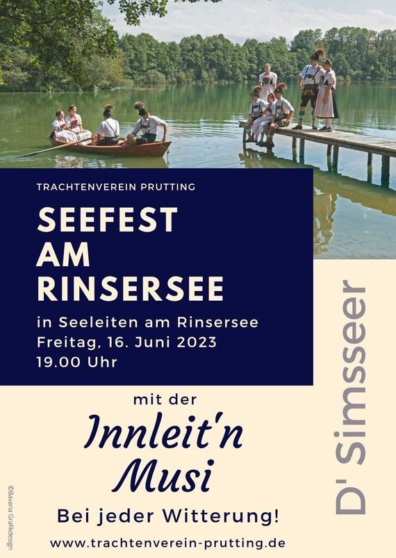 Auf gehts zum traditionellen Seefest nach Seeleiten am Rinsersee. Hierzu lädt euch der Trachtenverein Prutting recht herzlich für Freitag, 16. Juni ab 19 Uhr ein.