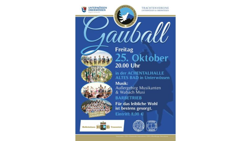 Am nächsten Freitag, 25. Oktober, lädt der Chiemgau Alpenverband um 20 Uhr zum diesjährigen Gauball in die Achentalhalle Altes Bad in Unterwössen ein.