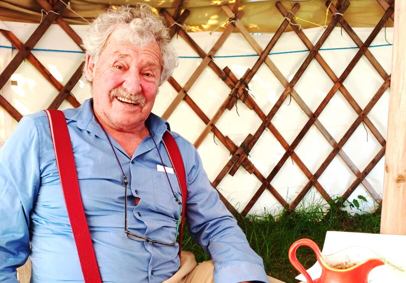 1930 hatte der Maler und Grafiker Willi Geiger das 400 Jahre alte, halb verfallene Bauernhaus gekauft und es während der NS-Zeit als Rückzugs- und Arbeitsort für sich und die Familie genutzt. In den 1980er Jahren wurde das Haus vor allem durch die Architektin Monika Geiger (Schwiegertochter von Willi), nutzbar gemacht und als Ferienhaus bewohnt. In 2004 hatte Florian Geiger die Tenne des alten Bauernhauses zu einem Ausstellungsraum umgebaut und so die erste Ausstellung ermöglicht. Insgesamt ist die Präsentation noch bis Sonntag, 8. September, dem Tag des Offenen Denkmals, zu sehen, nur am Wochenende, nämlich samstags und sonntags von 11 bis 17 Uhr. Das Foto zeigt Florian Geiger in der von ihm erbauten Yurte neben dem Künstlerhaus mit dem von ihm jetzt herausgegebenen und illustrierten Büchlein.