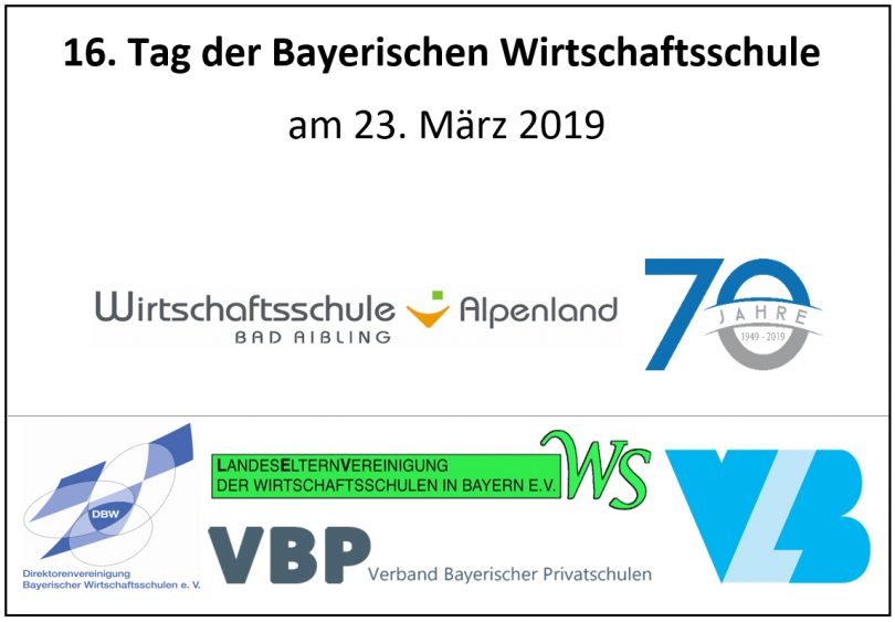 Der 16. Tag der Bayerischen Wirtschaftsschule wird am Samstag, den 23. März 2019, anlässlich der 70. Jubiläumsjahres an der Bad Aiblinger Schule stattfinden.