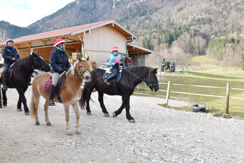 Der Verein „Pferdefreunde Schleching“ lädt zu einem beschaulichen Sternritt für Reiter und Gespannführer ins winterliche Achental ein. Am Stephanitag, Donnerstag, 26. Dezember führt der Weg aus allen Richtungen zum Reitstall Maria Posch nach Süssen. (an der Kreisstraße zwischen Marquartstein und Raiten) Auch in diesem Jahr wird Pfarrer Martin Straßer um 11.30 Uhr eine kurze Messe halten mit weihnachtlicher Pferdesegnung an der kleinen Kapelle in Süssen. (nur bei trockenem Wetter).