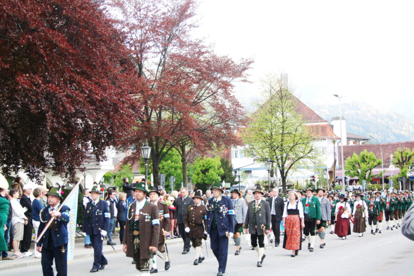 Samstag, 25. Mai: 17.30 Uhr Aufstellung der Teilnehmer in der Fußgängerzone 18.00 Uhr Abmarsch durch die Fußgängerzone zum Kurpark mit dortigen Festakt mit Totengedenken, Ehrungen und Fahnenübergabe. Anschl. Abmarsch zum Festplatz am Eisstadion zum Festabend mit der Musikkapelle Garmisch