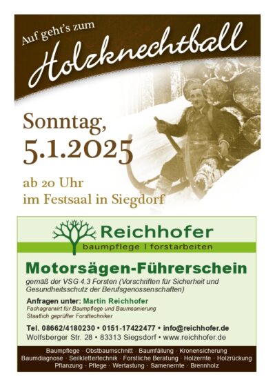 In Siegsdorf im dortigen Festsaal geht´s wieder auf zum Holzknechtball am Sonntag, 5. Januar 2025, Beginn ist um 20 Uhr.