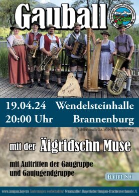 Der Inngau-Trachtenverband lädt am nächsten Freitag, 19. April 2024, um 19 Uhr herzlich zu ihrem Trachtengauball ein, der in der Wendelsteinhalle in Brannenburg stattfindet.